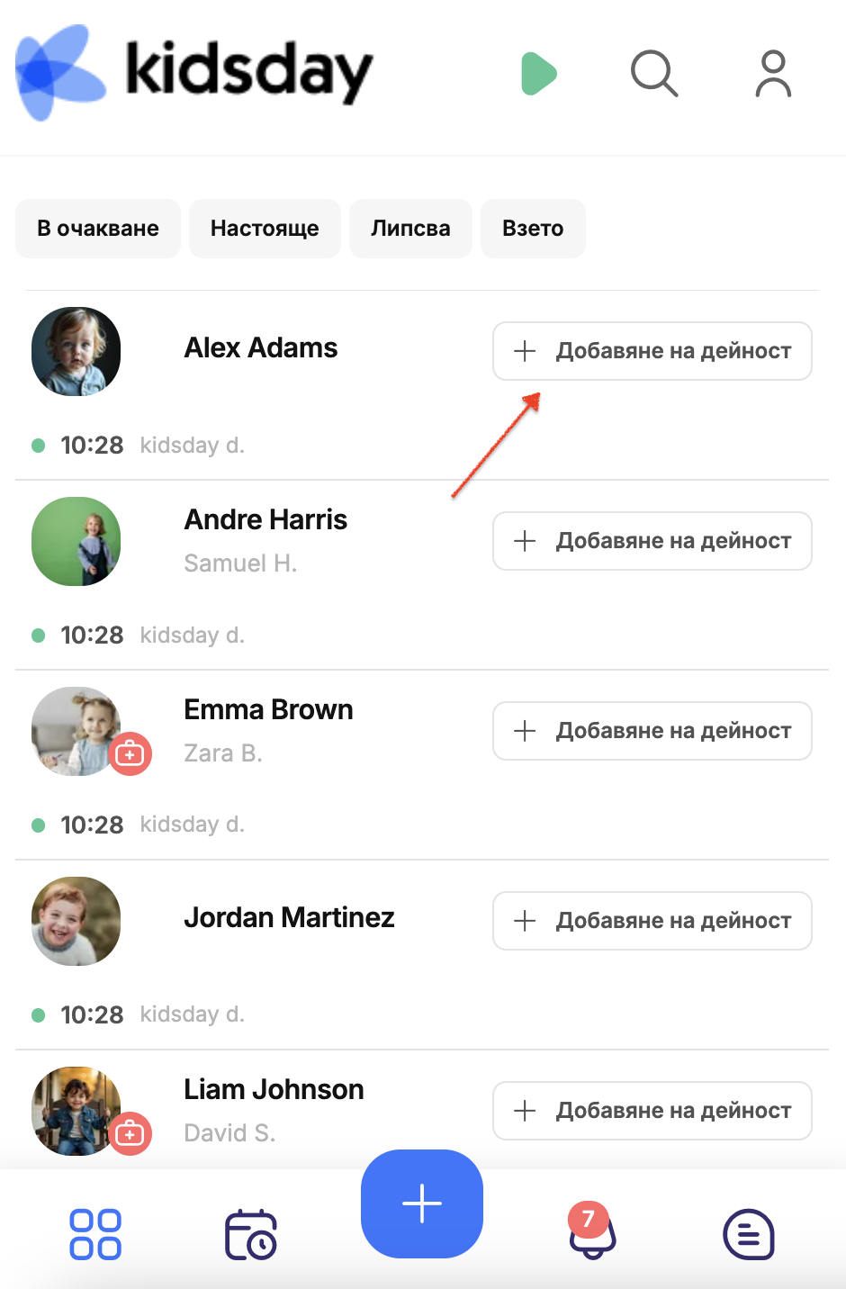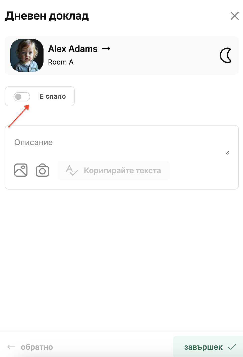Ако детето е спало, натиснете бутона до името на детето, за да го маркирате.