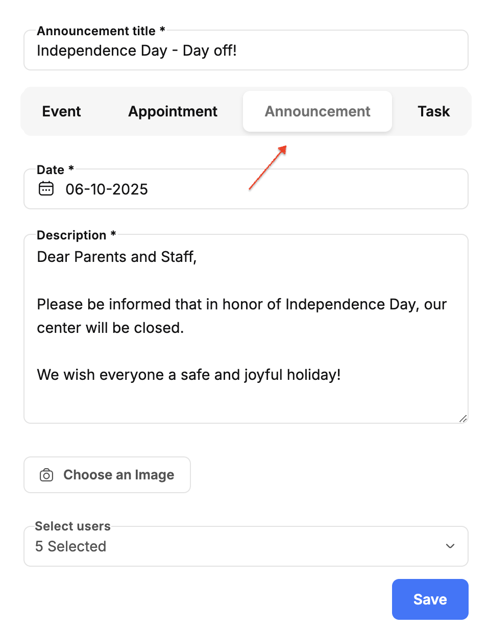 How to Create an Announcement in kidsday