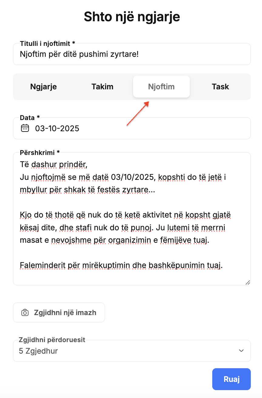 Klikoni mbi “Ruaj” për të dërguar njoftimin.