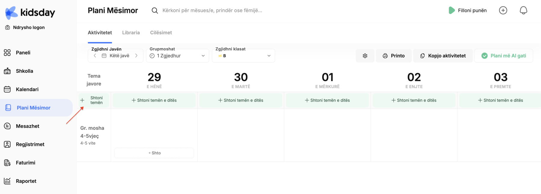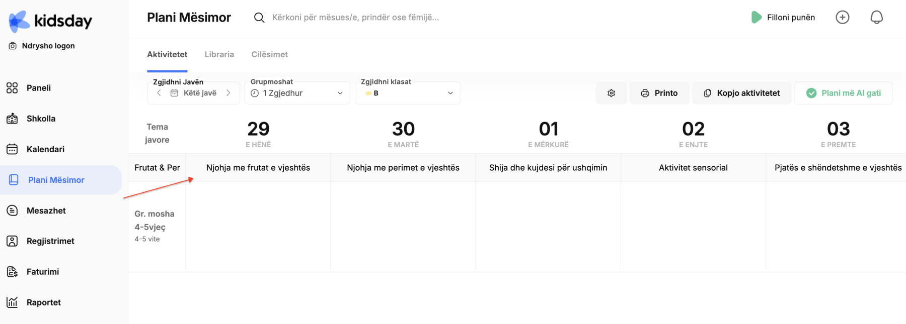 Si të planifikoni një plan mësimor manualisht në kidsday?