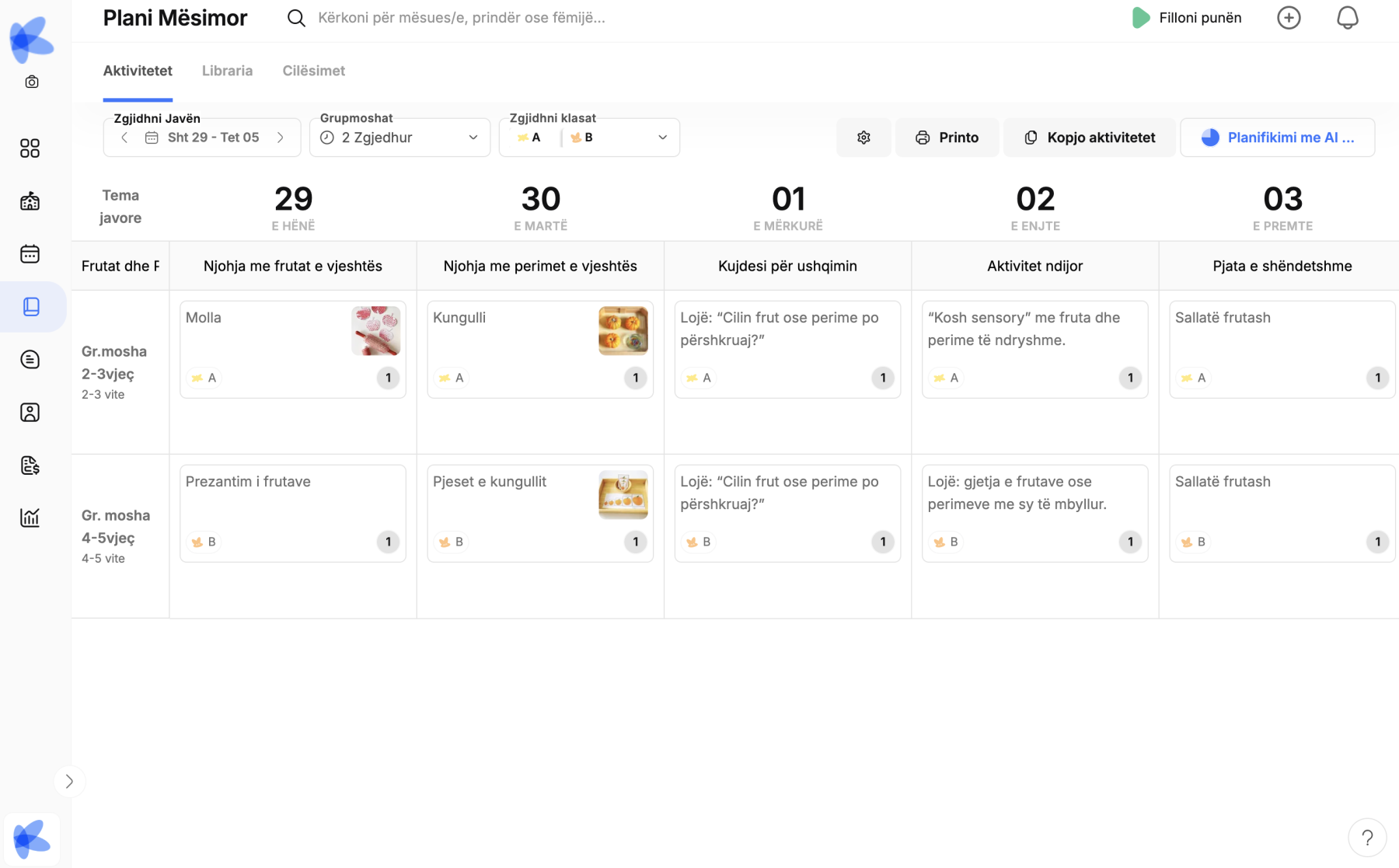 Fleksibilitet për çdo klasë – mund të planifikoni veçmas për secilën klasë ose grupmoshë.